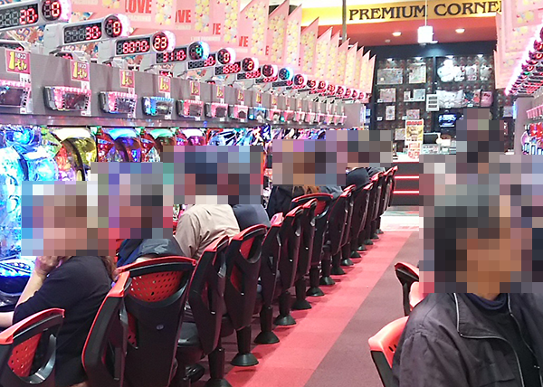 パチンココーナーでは、貸し玉料金を問わずに、海物語シリーズが盛況。大満足といった表情もみられ、プレイヤーは素敵なひとときを味わっているように感じられた。