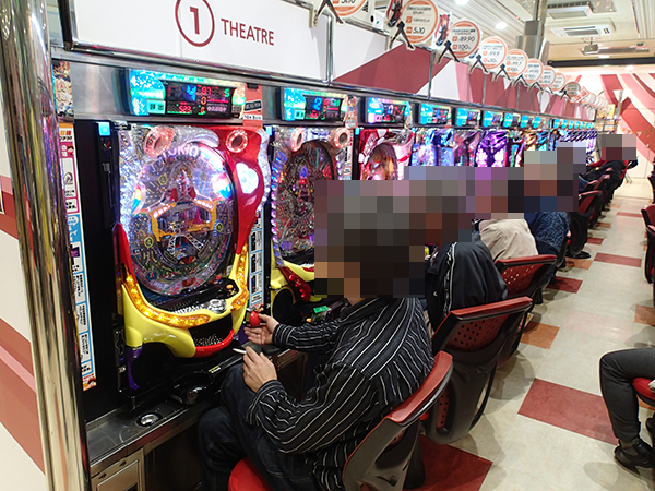 パチンコ・パチスロともに、多くのプレイヤーが遊技を楽しんでおり、ホール内には華やかな光景が広がっていた。