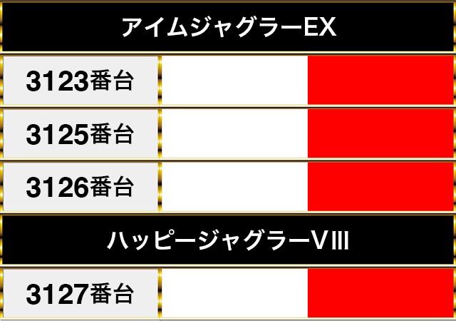 『アイムジャグラーEX』の3123番台から『ハッピージャグラーVⅢ』の3127番台までも並んでプラスpt!!