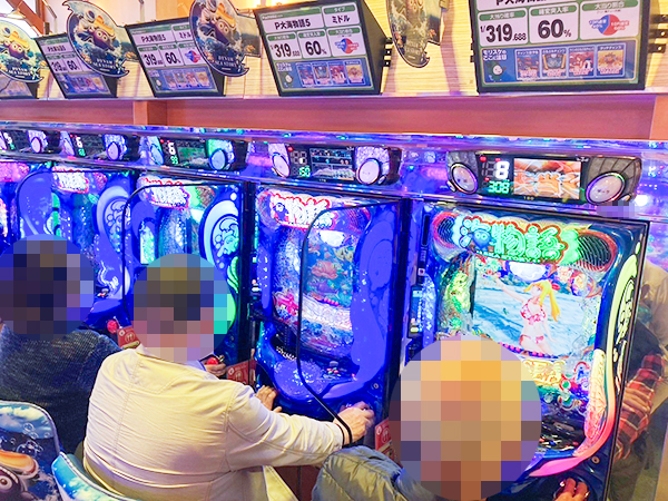 100円 98玉パチンコでは、海物語シリーズで微笑ましいシーンが見受けられ、プレイヤーたちは満足の遊技ができていたように思う。