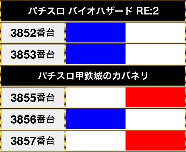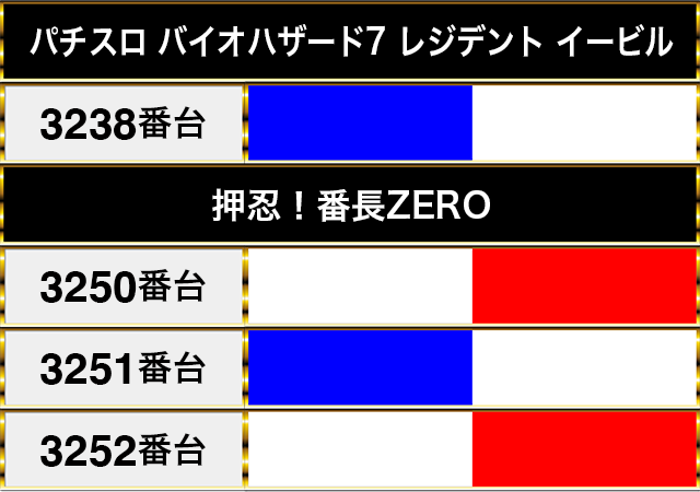 『パチスロ バイオハザード7 レジデント イービル』の3238番台から『押忍!番長ZERO』の3252番台までにも華やかな光景が広がっていた。