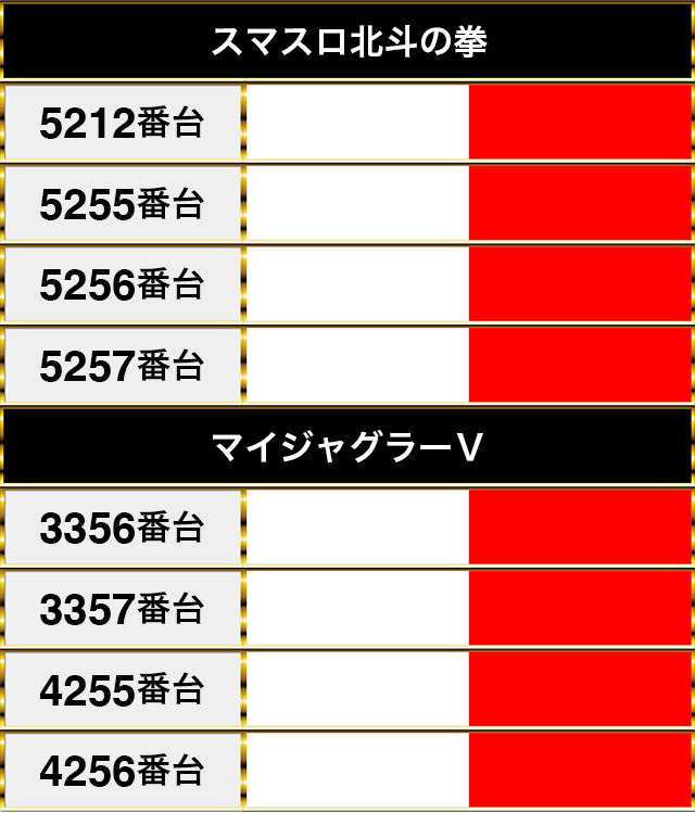 設置台数がもっとも多い『スマスロ北斗の拳』は5256番台や5257番台などがプラスpt!!