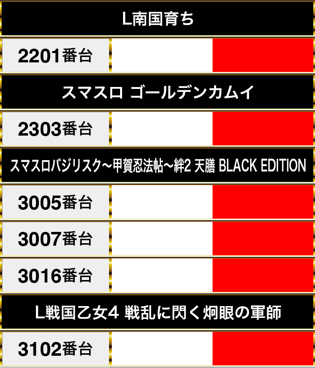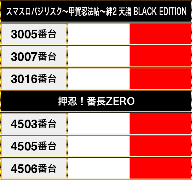 『スマスロバジリスク~甲賀忍法帖~絆2 天膳 BLACK EDITION』や『押忍!番長ZERO』なども複数の台がプラスptとなった。