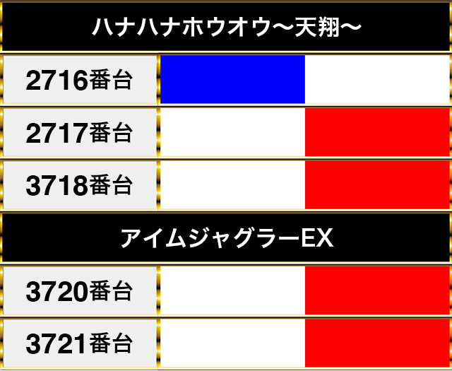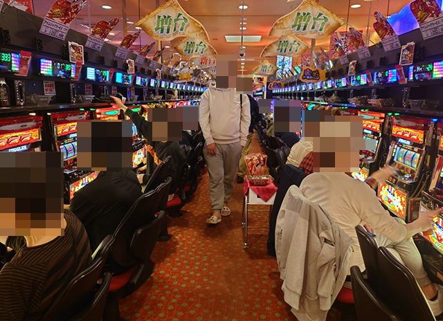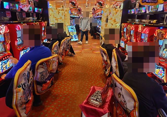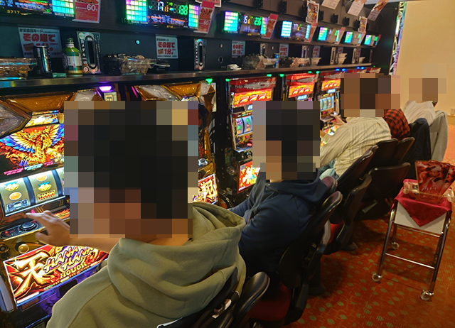 パチスロの状況をうかがうと、『ハナハナホウオウ~天翔~』と『アイムジャグラーEX』に笑顔のプレイヤーが並んでいた。