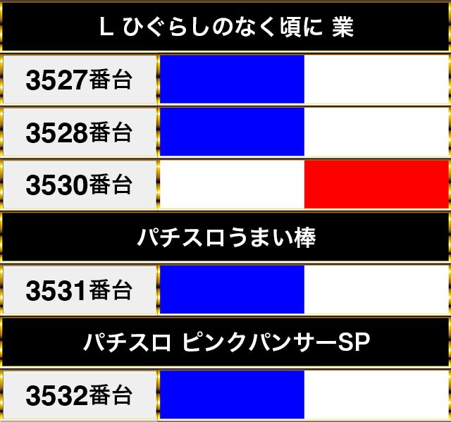楽しげな光景は、『L ひぐらしのなく頃に 業』の3527番台から『パチスロ ピンクパンサーSP』の3532番台までにも広がっていた。