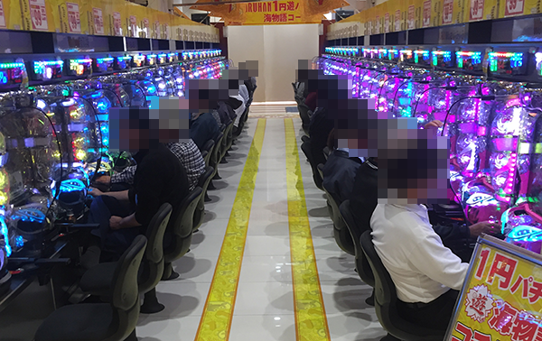 4円パチンコにおいて、もっとも盛り上がっていたのは「CRスーパー海物語IN沖縄4」。機種の性能を最大限まで引き出しているようなプレイヤーが多く、注目を集めていた。