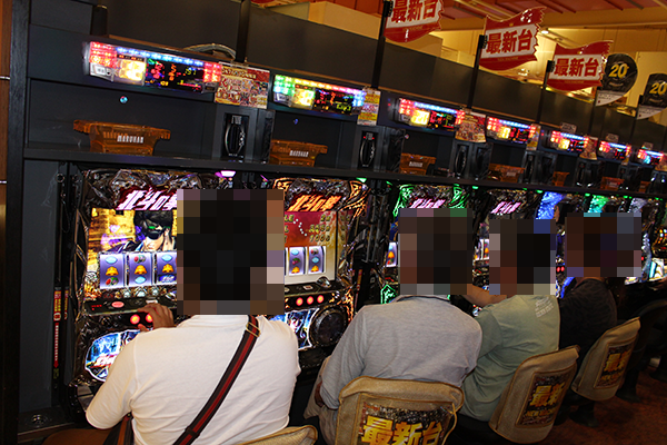 20円パチスロにおいて、ひときわにぎわっていたのが新台の「パチスロ北斗の拳 修羅の国篇」。プレイヤーたちの表情は明るく、遊技を堪能できていることもうかがえた。