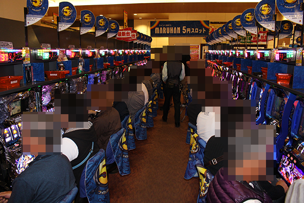 大勢のプレイヤーでにぎわう「マルハンみやき店」。充実した環境面と遊技面が、支持率の高さにつながっているように思えた。