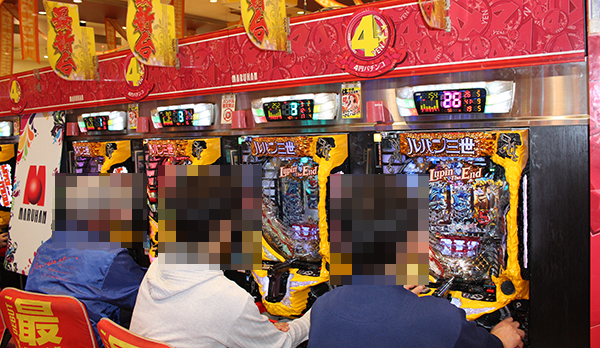 15時頃の4円パチンコでは、新台の「CRルパン三世~Lupin The End~」がほぼ満席。機種の魅力を堪能しているような笑顔もみられ、多くのプレイヤーが楽しい時間を過ごせていたように思う。