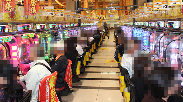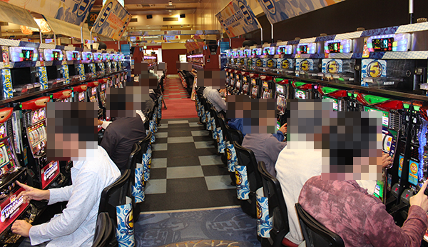 ホール内をのぞいてみると、パチンコ・パチスロともに大きくにぎわっていた。