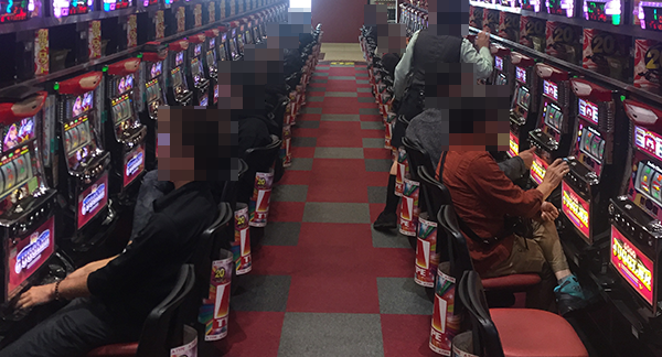 15時を過ぎた頃の20円パチスロでは、ジャグラーシリーズが大盛況。手応えを掴んでいるといった表情で遊技をおこなうプレイヤーが多く、充実感を得られていることもうかがえた。