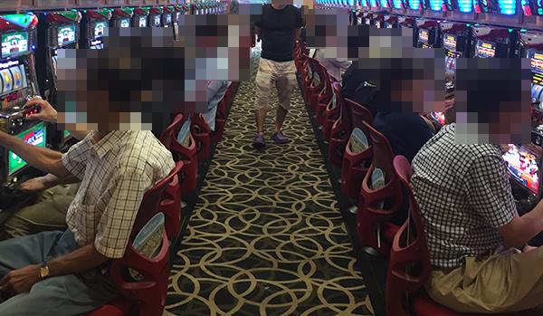 この日は雨と悪天候であったにもかかわらず、店内では多数のプレイヤーが遊技を楽しんでいた。タオルの貸し出しなど、こまやかなサービスがおこなわれていることも魅力的である。