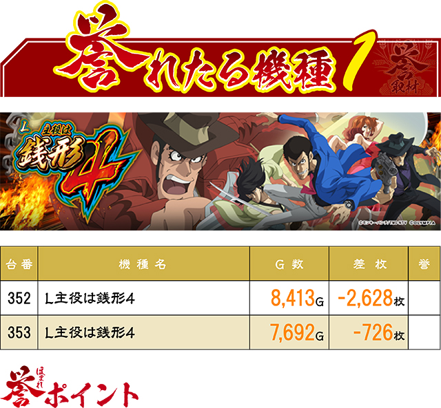 2台設置の『L主役は銭形4』だが、2台ともが思うような結果にはならず…。挙動自体は決して悪いものではなかっただけに、ヒキと展開に恵まれなかったのではないだろうか。