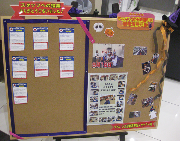 地域清掃活動の記録などを掲載したボードも要チェック。