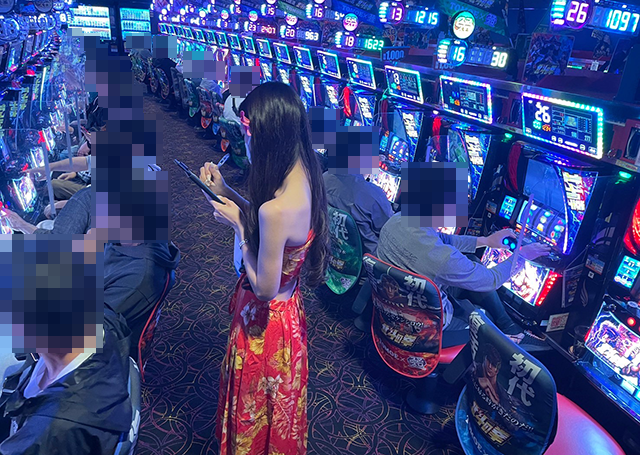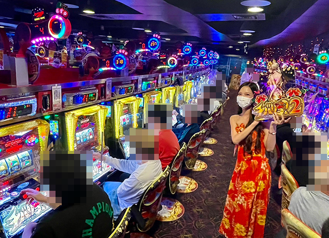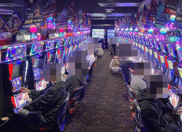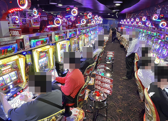 沖スロやスマスロなど、あちこちから活気が感じられた「パールショップともえ松戸店」。
