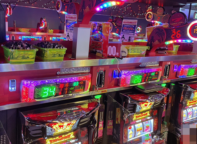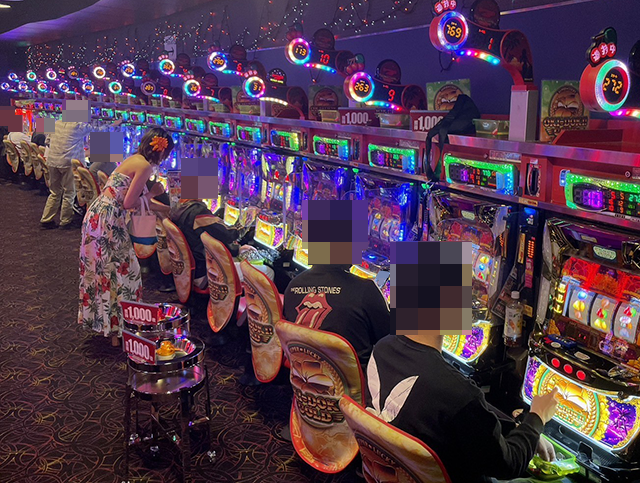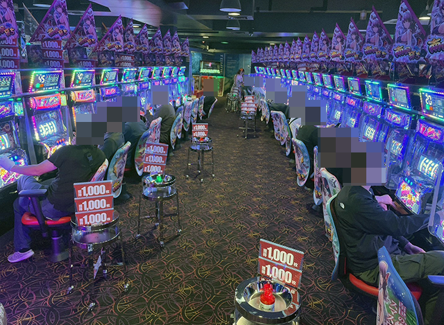 沖スロ以外も厚い支持を受けており、いろいろな機種が満席。