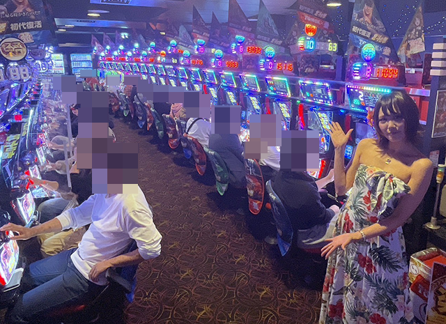 開店直後から人気を集めていた沖スロ、スマスロなど、あちこちが盛況となっていた「パールショップともえ松戸店」!