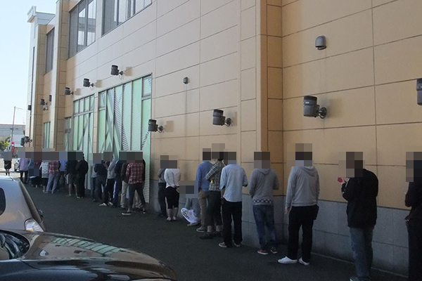 朝の並びに集まったプレイヤーはおよそ40名。開店を心待ちにしているといった姿も多くみられた。