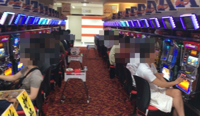 16時を回った頃ホール内を見てまわると、4円パチンコでは「CR蒼天の拳天帰」「CR仄暗い水の底から」を始め、バラエティーコーナーも大盛況。
