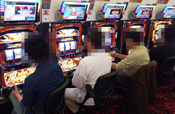 14時すぎになっても、20円パチスロでは「パチスロ北斗の拳 修羅の国篇」や「バジリスク~甲賀忍法帖~絆」が盛況。機種の性能をうまく引き出しているといったプレイヤーが多く、充実感を得ているように思えた。