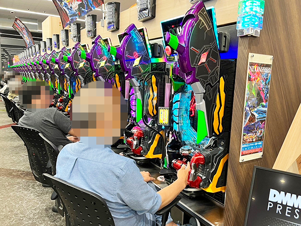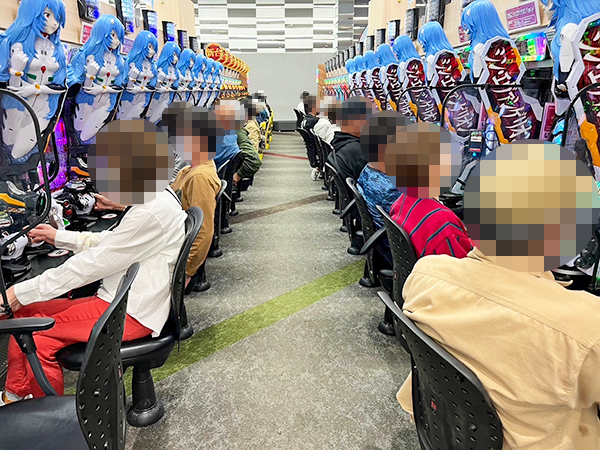 15時ごろの4円パチンコでは「P牙狼11〜冴島大河〜XX」や「ぱちんこ シン・エヴァンゲリオン Type レイ」が盛況で、魅力的なシーンをシマの至る所で目にしている。