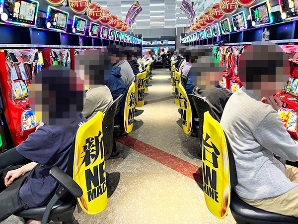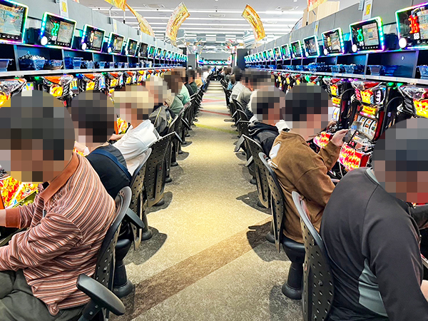店内では貸し玉料金を問わず様々な機種で、心ゆくまで楽しむプレイヤーの姿が見られた。
