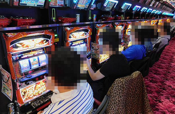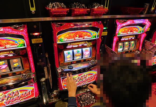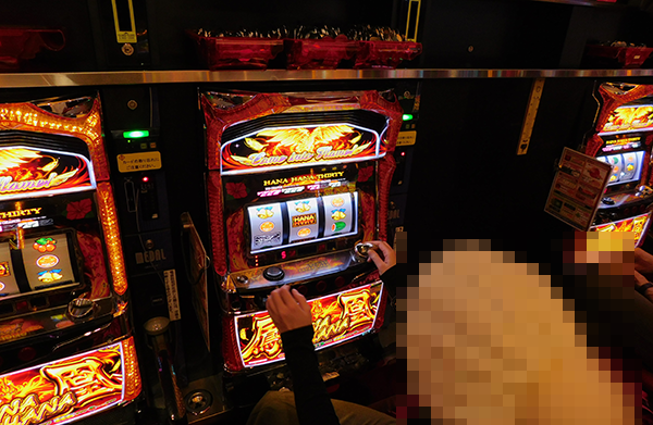 このホールには、「ハナハナ鳳凰-30」をはじめとする全3機種のハナハナシリーズが設置されている。どの機種も明るい雰囲気となっており、プレイヤーの期待の大きさもうかがえた。