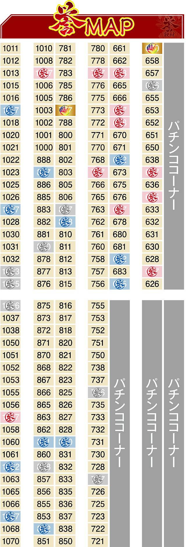 こちらのブロックからは、赤誉マークが5台も出現!お馴染みの機種から3,000枚超えが生まれる中、1台設置の『スマスロ ゴールデンカムイ』からも3,000枚超えレコードが生まれていた!