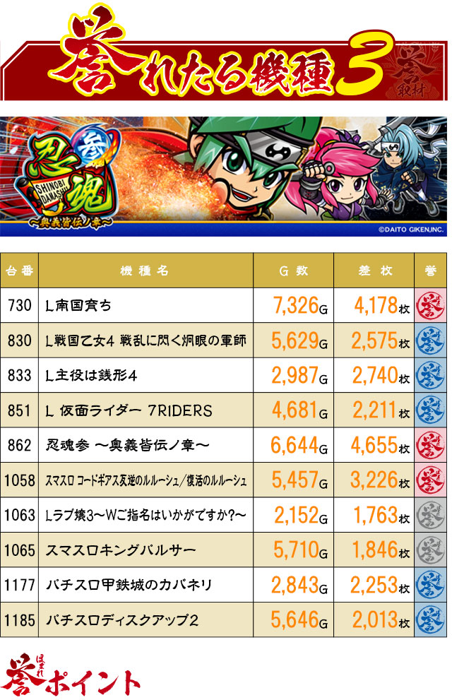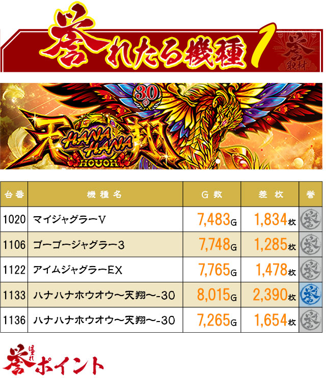 こちらのブロックでも誉マーキングが続出する事態に。少台数マシンも多台数マシンも関係なく優れた結果を残してくれた。