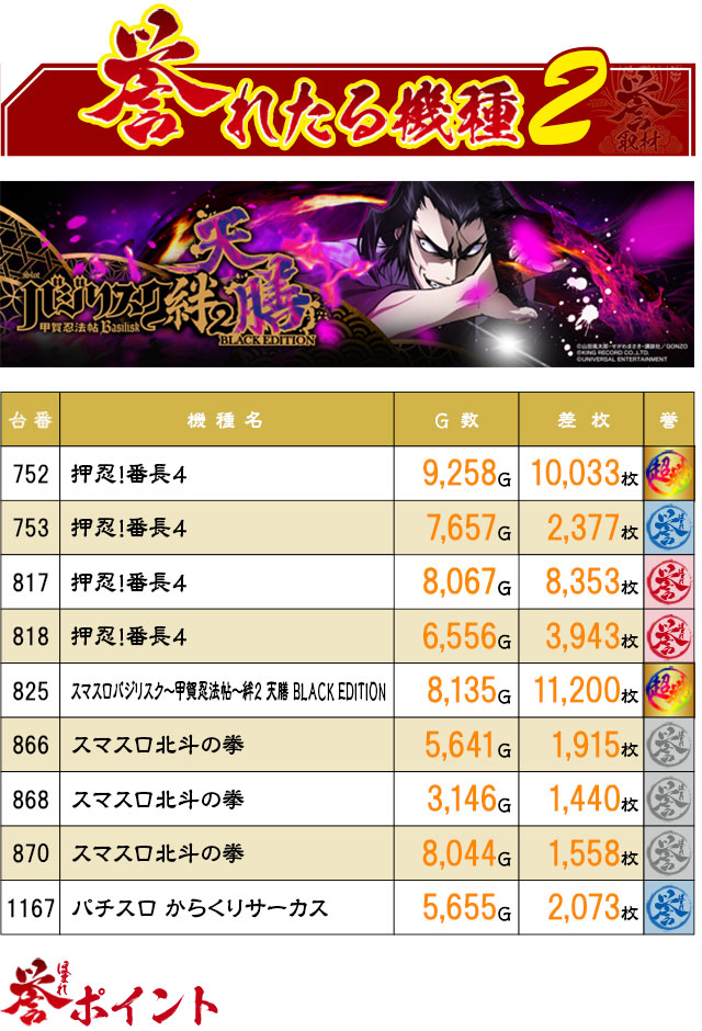 直近で仲間入りを果たした『押忍!番長4』がさっそくその力を誇示。凄まじい爪痕を残すこととなった。その勢いに引っ張られたのか、『スマスロバジリスク~甲賀忍法帖~絆2 天膳 BLACK EDITION』『スマスロ北斗の拳』からも好結果が続々と誕生!