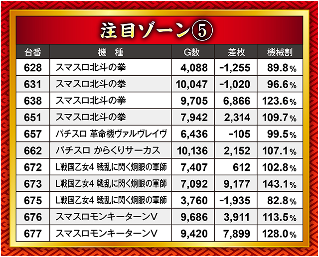 『スマスロ北斗の拳』『L戦国乙女4 戦乱に閃く炯眼の軍師』『スマスロモンキーターンV』の3機種が、他機種を寄せ付けぬ強さを見せつけた。3機種からは6,000枚超え記録が生まれていた…!