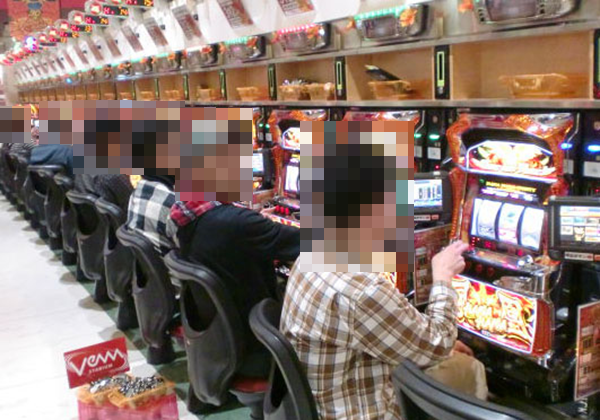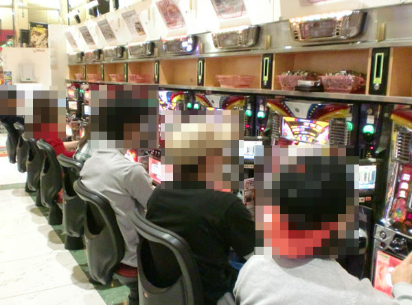 2種類あるパチンコの低貸し玉コーナーもにぎやかな状況。