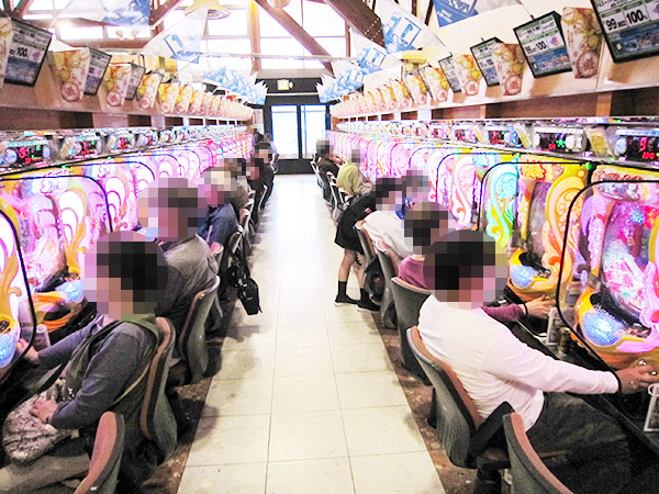 100円/89玉パチンコをチェックすると、海物語シリーズに人気が集まっており、ほぼ満席となるほどのにぎわいを見せていた。