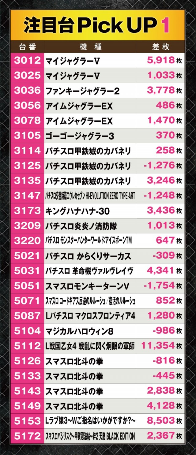 そのほかにも今回のブラックエンジェルス降臨では、様々な場所で好調台の活躍を確認することができた。次回開催時にはこれらを参考に、是非チャンスを掴んでくれ!