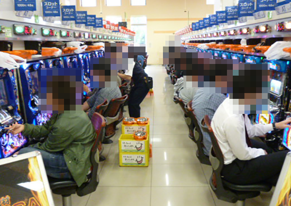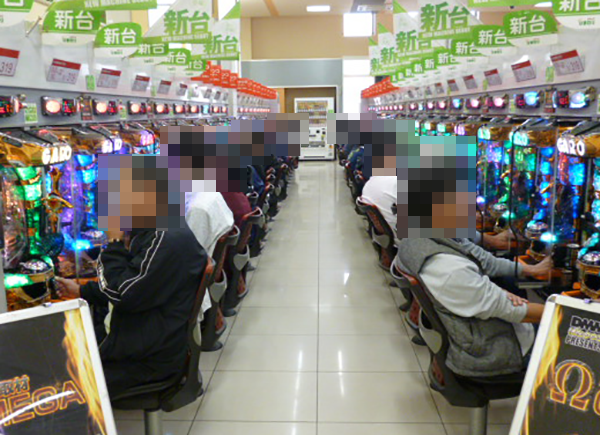 「ぱちんこCR蒼天の拳天帰」や海物語シリーズが空き台も見当たらないといった状況となっており、大きな活気が感じられた。
