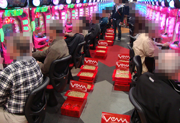 4円パチンコにおいて、もっともにぎわっていたのは「CRスーパー海物語IN沖縄4」。機種の性能を引き出しているような姿が多く、プレイヤーも大満足といった表情を浮かべていた。