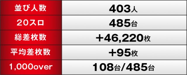 総差枚数+46,220枚という結果により、「楽園相模原店」は「英雄のリアル」デビュー戦を勝利で締めくくった。1,000OVER台も108台という数字を残しており、いかに同店が高い実力を持っているのかが分かるだろう。今後も同等以上の内容で迎えてくれるのは必至であることから、引き続き動向や情報をチェックしてもらいたい!
