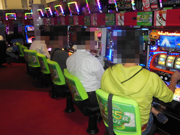 なかでも、1000円/470枚パチスロが満席となるほどに大人気。「パチスロ北斗の拳 強敵」や「アナザーゴッドハーデス」など、さまざまな機種から活気が感じられた。