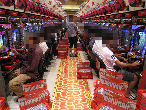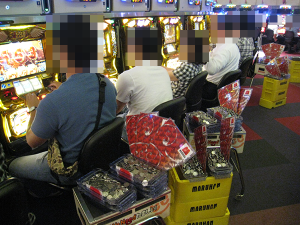 AT・ART機である「ミリオンゴッド-神々の凱旋-」やボーナスタイプの「ハナビ」、ジャグラーシリーズなど、機種のスペックを問わずに楽しそうな光景が広がっていた。