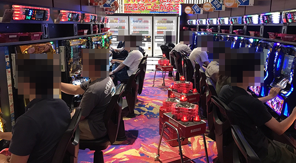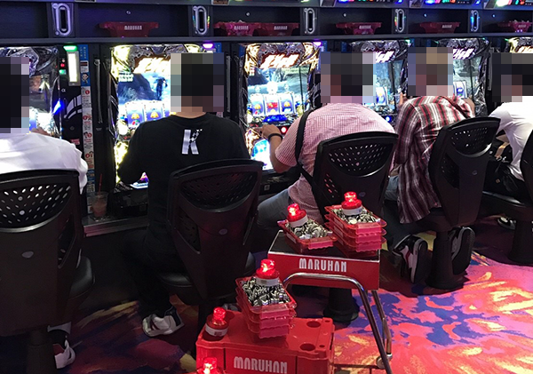 14時を過ぎた頃のパチスロのなかで、とくに活気づいていたのは新台の「パチスロ北斗の拳 修羅の国篇」。機種の特徴を活かしているようなプレイヤーが多く、満足度の高さもうかがえた。