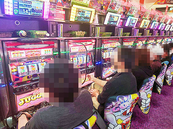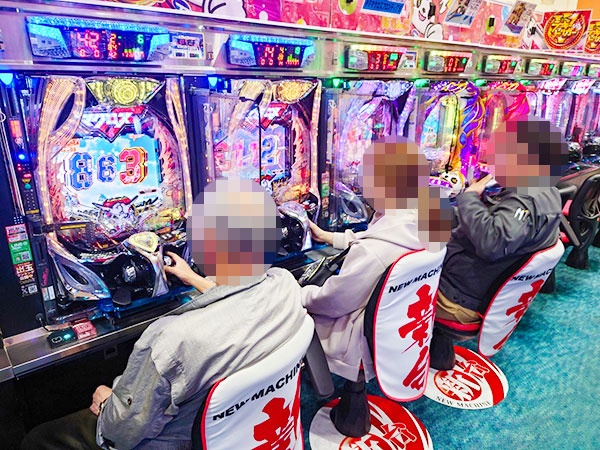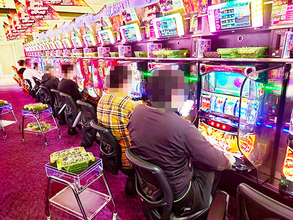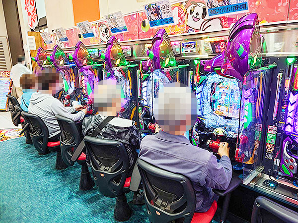 取材時は既に多くのプレイヤーであふれており、パチンコ・パチスロを問わず楽しげな表情でいっぱいだった。