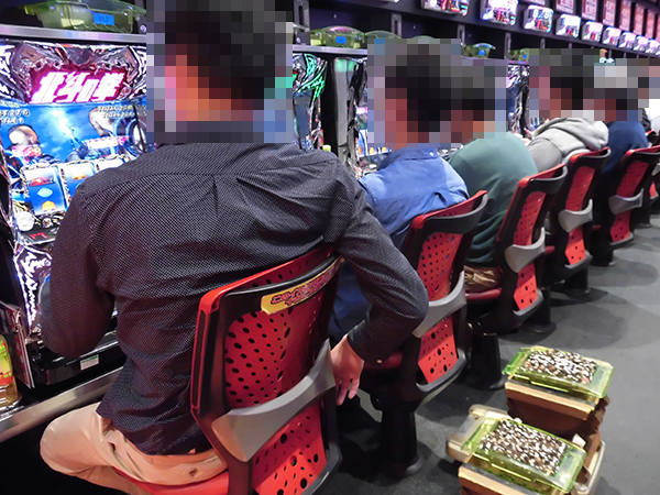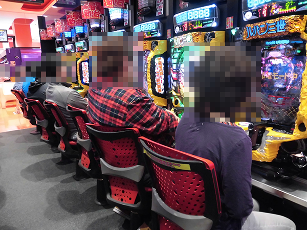 14時頃のパチスロをみると、「バジリスク~甲賀忍法帖~絆」や「パチスロ北斗の拳 修羅の国篇」が朝イチからの高稼働をキープ。機種の性能を最大限まで引き出しているようなシーンもみられ、大きく盛り上がっていた。