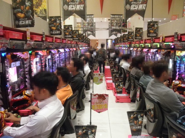 20円スロットコーナーは、新台「パチスロ北斗の拳 修羅の国篇」が瞬く間に席が埋まっていた。午後になるとその勢いはさらに増していき、プレイヤーたちの満足そうな表情がいたる所で確認できた。