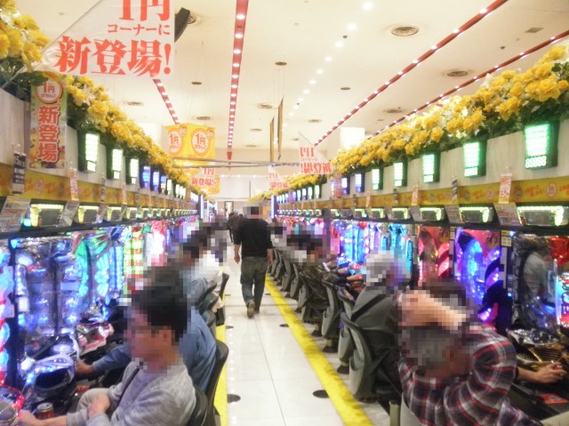 4円パチンコ同様、低貸し1円パチンココーナーもプレイヤーたちでにぎわいをみせていた。