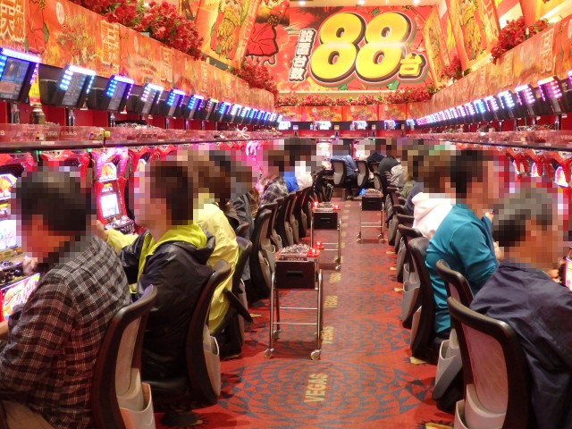 新台導入されて間もない「パチスロ北斗の拳 修羅の国篇」でも常に満席となる稼働をみせていた。北斗シリーズの新作という魅力もあり、なかには注目を集めるプレイヤーの活躍が目立ち、シマ一帯は大盛り上がりのようだ。