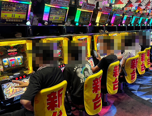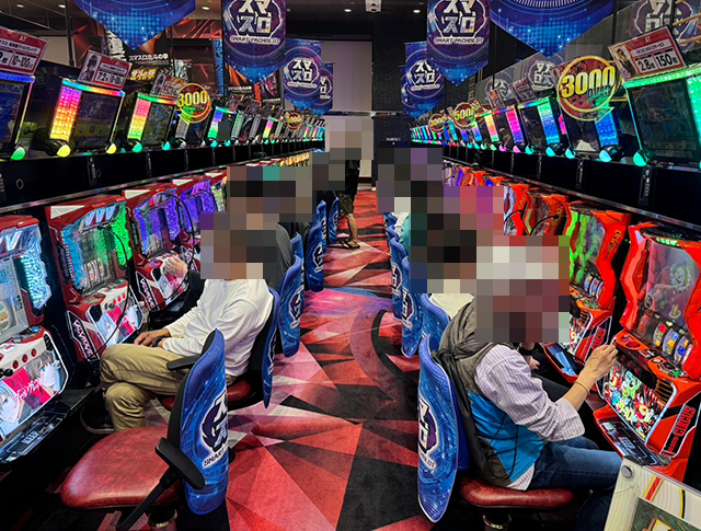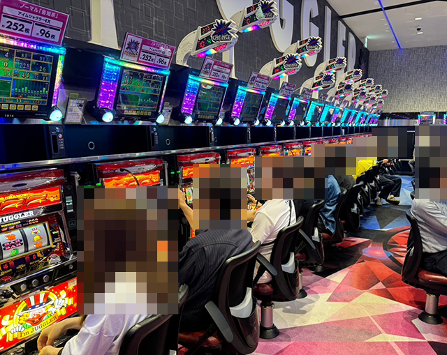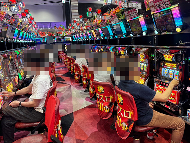 ジャグラーシリーズを支持しているプレイヤーも多く、「アイムジャグラーEX」と「ゴーゴージャグラー3」の両方に、華やかな光景が広がっていた。