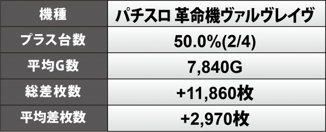そして『パチスロ 革命機ヴァルヴレイヴ』は万枚突破2台を輩出する大仕事。中でも661番台が+1万8千枚に届く手前となるビッグヒットを残した。