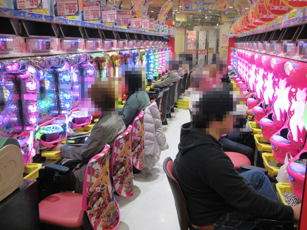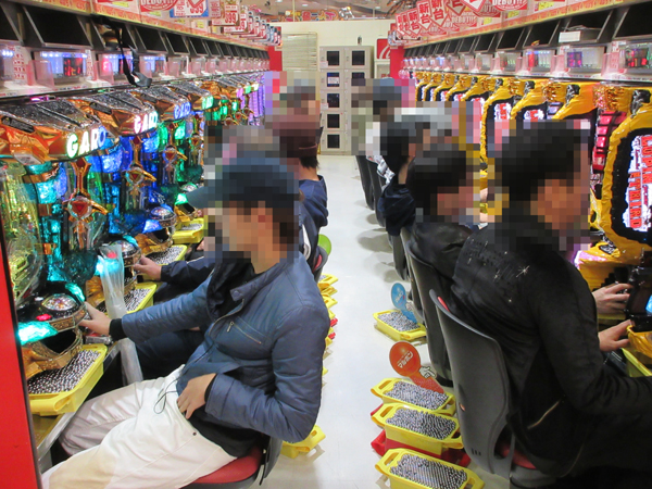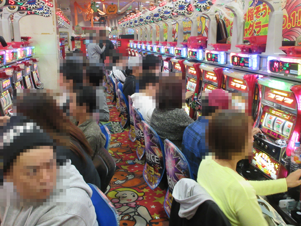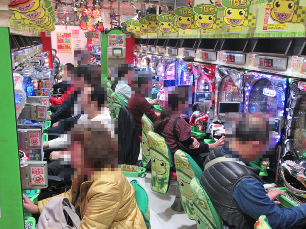 1円パチンココーナーは中高年層を中心に、海物語シリーズが盛り上がりをみせていた。様々な機種で楽しげな雰囲気となっていた。