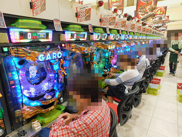 午後になると、4円パチンコでは「CR牙狼 魔戒ノ花」が盛況。多くのプレイヤーが遊技を楽しんでおり、機種の魅力を味わえているようであった。