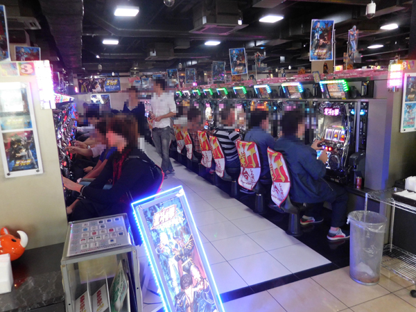 パチスロコーナーでは人気機種である「バジリスク~甲賀忍法帖~絆」を筆頭に、新機種「パチスロ北斗の拳 修羅の国篇」が絶好調。機種のスペックをフルに発揮すべく、若いプレイヤーを中心に活気に満ちていた。
